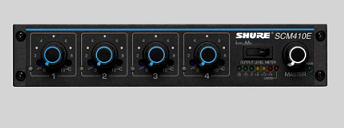 可与任何低阻抗动圈或电容话筒(包括无线话筒)配合使用。 多台SCM410混音器能与其他SCM410混音器、以及舒尔SCM810和SCM800连接。