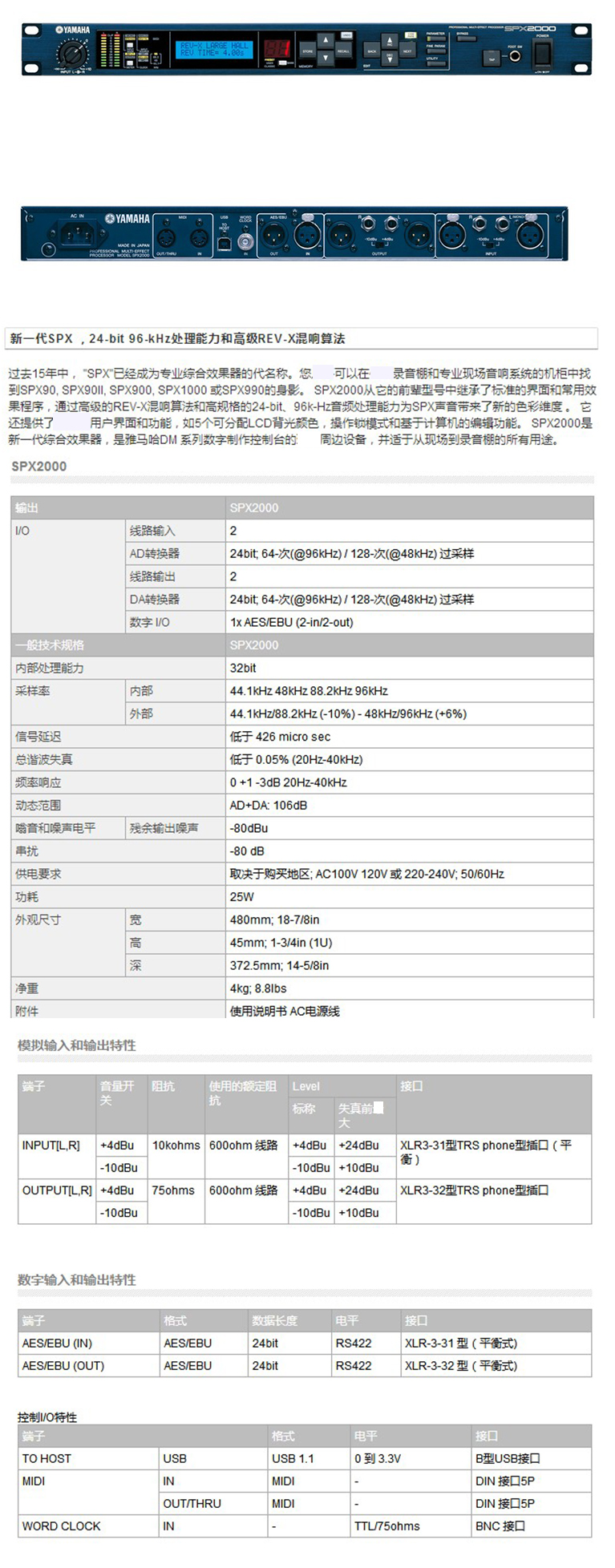 SPX2000 YAMAHA日本效果处理器