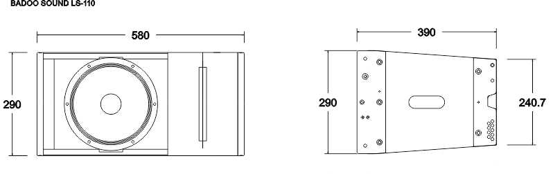 LS-110 uses a 10inch woofer speakers(75mm voice coil), and a 3inch neodynium tweeter ( 1.4inch exit) with big power. Horn loaded construction offers high sensitivity(112dB/1W/1M) and creats a low warp wavefront. It uses improved horn to control well the vertical coverage exactly at 8 degree, so to make seamless joining of sound.